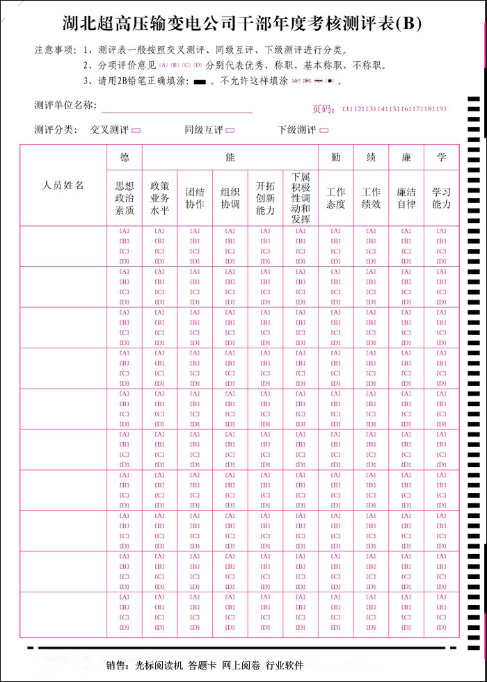 光標(biāo)閱讀機用于大型閱卷:如高考、中考、會考、結(jié)業(yè)考試、國內(nèi)外各級重要培訓(xùn)的考試考核等大型考試的閱卷。