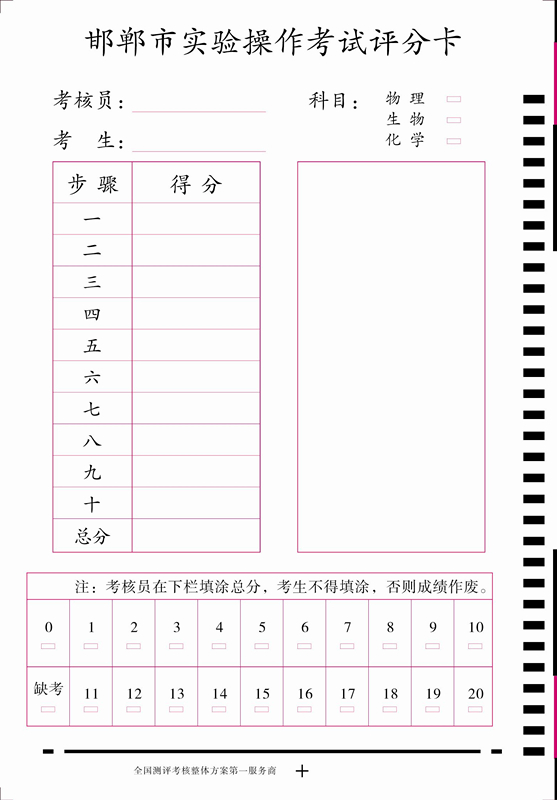 產(chǎn)品標(biāo)題:實(shí)驗(yàn)操作考試評分卡