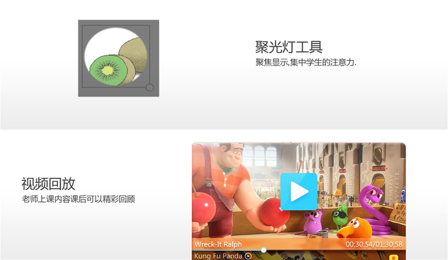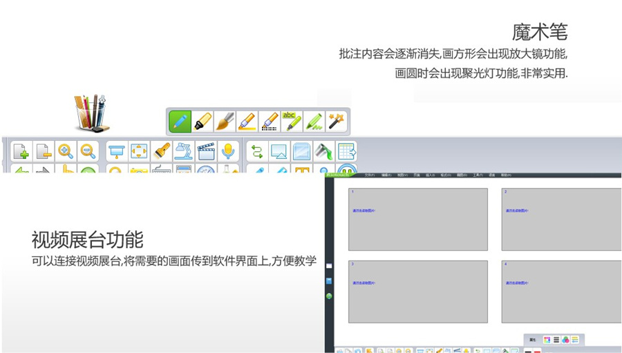 集成了電子白板、平板電視、電腦、投影機(jī)、投影幕布、音響、廣告機(jī)、WINI等多種功能為一體的互動(dòng)教學(xué)機(jī),從而增強(qiáng)了教學(xué)互動(dòng)性,使教學(xué)更簡(jiǎn)潔、更簡(jiǎn)易、更高效。