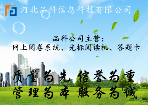 品科網上閱卷系統是品科公司在總結了多年以來教育行業服務經驗的基礎上,為實現紙筆考試的電子化管理,一次性解決所有考試管理事務(包括答題卡智能設計、試卷掃描、客觀題自動識別、主觀題網上閱卷以及自動生成考試成績報告),而開發的一套閱卷服務系統。這套系統集答題卡制作、報名信息錄入、標準答案及分數設置、答題卡錄入和自動判分、主觀題錄入和判分、試卷評判分組、錯判糾正機制、綜合分析、報表智能輸出等眾多強大功能于一體,不僅可以大大節省考試的人力、財力、物力成本,還可以保證閱卷的精確性和提高閱卷速度,甚至還支持家長和老師隨時查詢學生成績,能飛躍性促進考試管理信息化。
